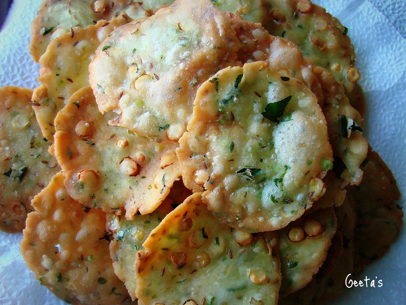 - Once they turned desired color , remove them from the vessel using a slotted laddle and place them onto an oil absorbent paper.